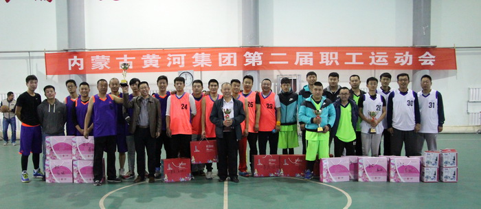 上圖為籃球比賽前四名合影 一等獎千里山煤焦化隊 二等獎眾利惠農(nóng)隊 三等獎包鋼萬騰隊 四等獎萬晨化工隊