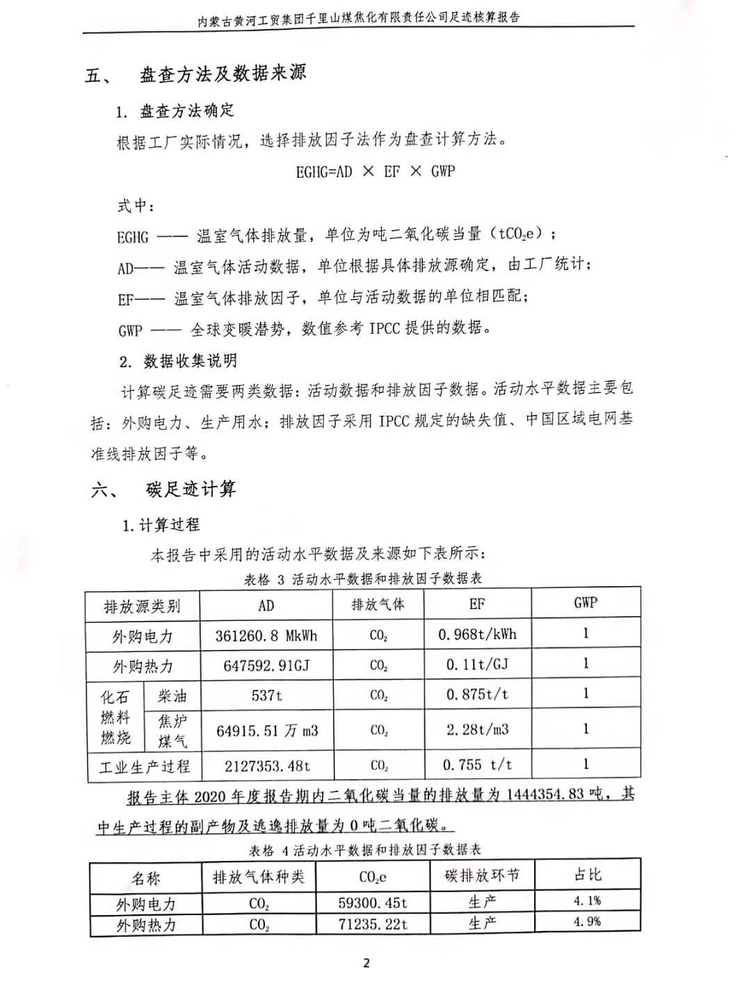 內(nèi)蒙古黃河工貿(mào)集團(tuán)千里山煤焦化有限責(zé)任公司碳足跡核算報告